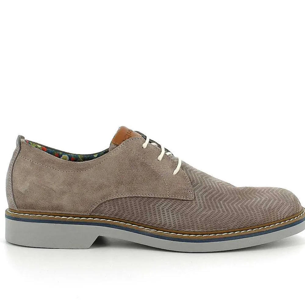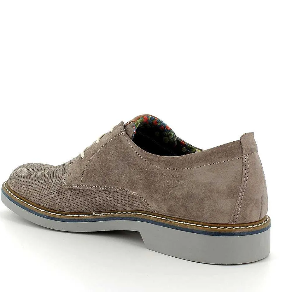 Modello Derby Stile Oxford In Pelle Scamosciata Con Stringhe E Suola A Contrasto Per Un Look Giovane E Dinamico. Pratico E Versatile, Si Adatta Al Meglio Ad Ogni Occasione D’Uso. La Fodera In Tessuto Con Stampa Fantasia Aggiunge Un Tocco Di Originalità In Più. Il Sottopiede In Pelle Assicura Igiene E Comfort.